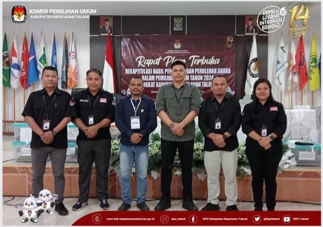Turut Hadir Unsur Forkopimda Kabupaten Kepulauan Talaud atau yang mewakili, Ketua dan Anggota Bawaslu kabupaten Kepulauan Talaud Beserta Jajaran, Saksi dari masing-masing Pasangan Calon Presiden dan wakil Presiden, Saksi DPD, Saksi Partai Politik Serta undangan lainnya.