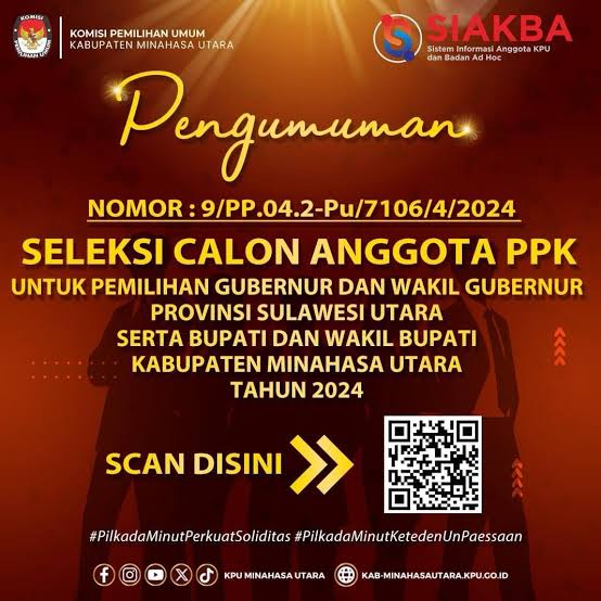 PolitBerita.id-Jelang pelaksanaan pemilihan kepala daerah (Pilkada) November 2024 mendatang, Komisi Pemilihan Umum (KPU) Kabupaten Minahasa Utara membuka seleksi penerimaan Panitia Pemilihan Kecamatan (PPK) di 10 Kecamatan dan Panitia Pemungutan Suara (PPS) di 125 Desa dan 6 Kelurahan.