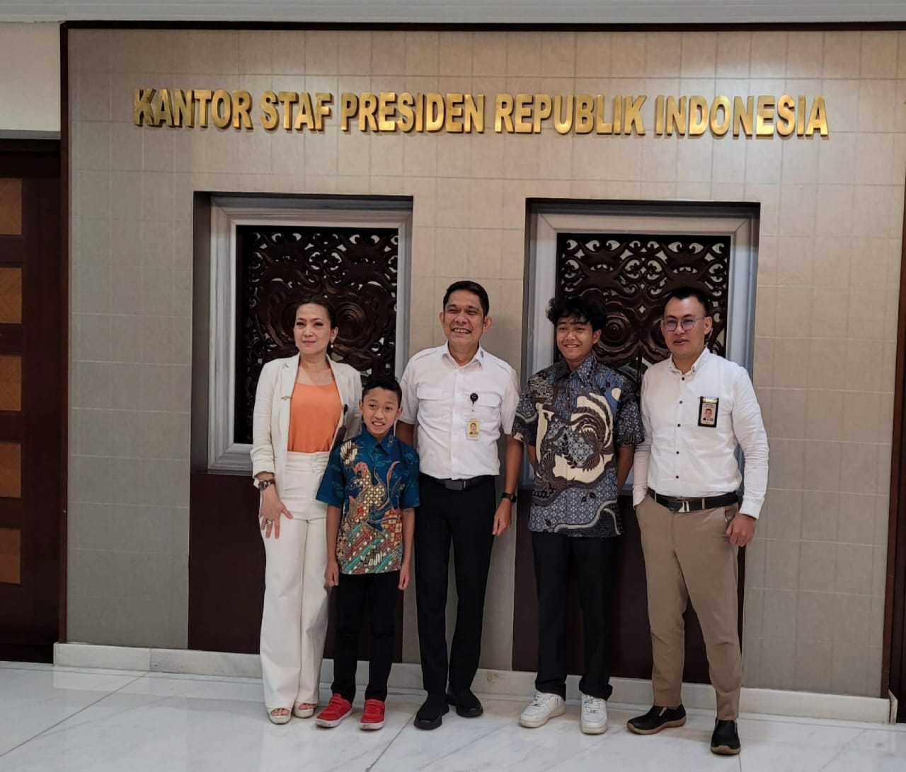 Deputi II Bidang Pembangunan Manusia Kantor Staf Presiden, Abetnego Putra Panca Tarigan didampingi Tenaga Ahli Bidang Perempuan dan Anak, Erlinda dan Tenaga Ahli Pemuda dan Olahraga, Harsen Roy Tampomuri menerima kedatangan Fachri bersama kedua orang tua dan adiknya Fahmi (12) yang juga menekuni olahraga sepak bola di Jerman.