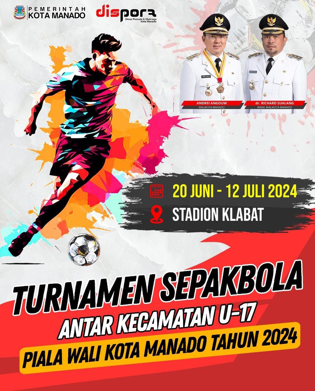 Untuk terus menelurkan bibit-bibit baru atlet sepak bola, Pemerintah Kota Manado menyelenggarakan Turnamen Sepakbola Antar Kecamatan U-17 yang memperebutkan Piala Walikota Manado Tahun 2024.