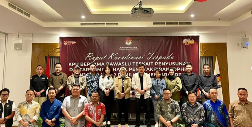 KPU Minahasa Utara Hadiri Rapat Koordinasi Terpadu bersama Bawaslu Terkait Penyusunan Daftar Pemilih Hasil Pemutakhiran (DPHP) menjadi Daftar Pemilih Sementara (DPS) Pada Pemilihan Serentak Tahun 2024 pada hari Sabtu-Senin, 27 – 29 Juli 2024 di Four Point Hotel Manado, turut hadir Ketua Divisi Rendatin Ireine Buyung, Kasubbag Rendatin Yulia Widiastuti, Admin Sidalih Untary Rani serta Operator Harry Waney. Narasumber dalam rakor yaitu Ketua Bawaslu Provinsi Sulawesi Utara Ardiles Mewoh, ANggota Bawaslu Provinsi Sulawesi Utara Steffen S. Linu dan Kepala Dinas Dukcapil Provinsi Sulawesi Utara Christodharma Sondakh.