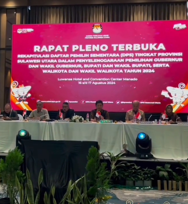 Sabtu (17/08) KPU Minahasa Utara mengikuti Rapat pleno terbuka Rekapitulasi Daftar Pemilih Sementara (DPS) Tingkat Provinsi Sulawesi Utara Dalam Penyelenggaraan Pemilihan Gubernur dan Wakil gubernur, Bupati dan Wakil Bupati, serta Walikota dan Wakil Walikota Tahun 2024 di Hotel Luwansa Manado. Hadir dalam giat ini Ketua, Anggota, Sekretaris, Kasubag Rendatin, Perwakilan Dinas Dukcapil Minut, Admin serta Operator Sidalih.