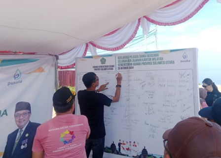 Acara yang bertujuan memperkuat komitmen bersama dalam menjaga kerukunan dan kedamaian jelang Pemilihan Kepala Daerah (Pilkada) yang akan digelar pada akhir November nanti, dihadiri oleh Kepala Kanwil Kemenag Sulawesi Utara Ulyas Taha, bersama pejabat administrator.