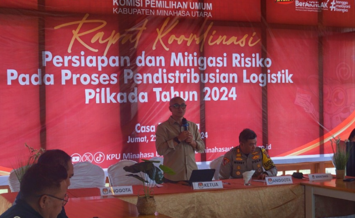 Komisi Pemilihan Umum Kabupaten Minahasa Utara (KPU Minut) menggelar Rapat Koordinasi Persiapan dan Mitigasi Risiko Pada Proses Pendistribusian Logistik Pilkada Tahun 2024, Jumat (22/11) bertempat di Casa Benedetta, Warukapas.