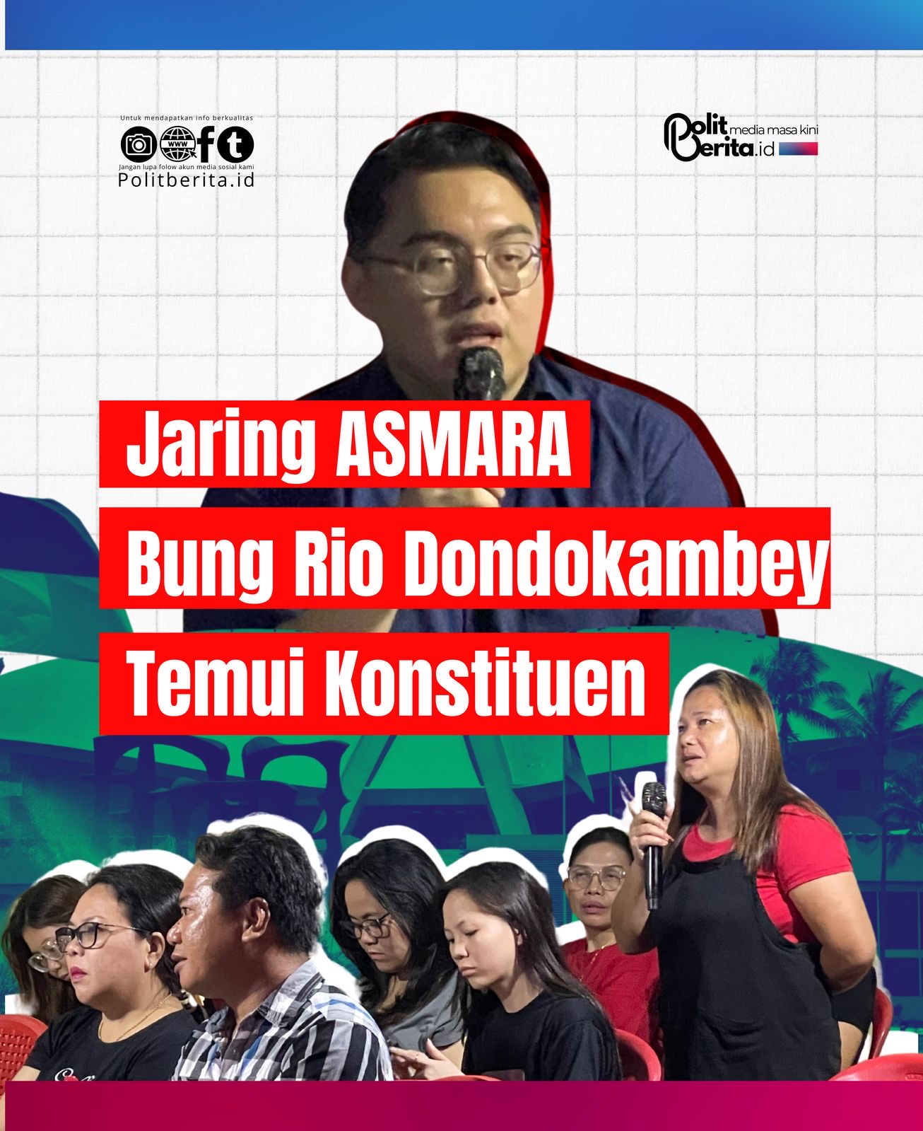 Rio A. J Dondokambey,B.Sc,M.BA Menjaring ASMARA Atau Aspirasi Masyarakat dalam menjalankan Tugas sebagai Naggota DPR RI Komisi sebelas yang membidangi Perencanaan Pembangunan Nasional, Moneter dan Sektor Jasa Keuangan. Pada masa reses 2 ini, Bung Rio turun langsung ke masyarakat di beberapa titik, Salah satunya di kelurahan karombasan Selatan, Kecamatan Wanea Kota Manado.