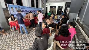 Pemerintah Provinsi Sulawesi Utara (Pemprov Sulut) menggelar Gerakan Pangan Murah di lima lokasi strategis di Kota Manado, yaitu di gereja, masjid, dan sekolah. Kegiatan ini bertujuan membantu masyarakat mengakses bahan pokok dengan harga terjangkau di tengah naik turunnya harga pangan.