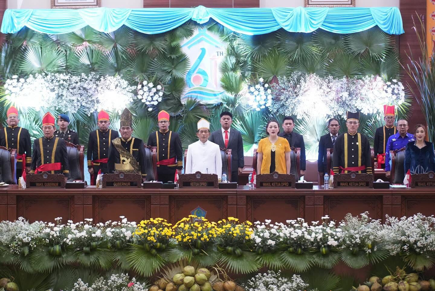 DPRD Provinsi Sulawesi Utara menggelar rapat paripurna istimewa dalam rangka memperingati Hari Ulang Tahun (HUT) ke-61 Provinsi Sulawesi Utara, Selasa (23/9/2025). Rapat paripurna yang berlangsung di ruang rapat utama DPRD Sulut ini dipimpin langsung oleh Ketua DPRD Sulut Fransiscus A. Silangen, didampingi Wakil Ketua Michaela Paruntu, Royke Anter, dan Stela Runtuwene. Keempat pimpinan dewan tampil mengenakan pakaian adat dari berbagai etnis sebagai simbol kebhinekaan budaya Sulut.