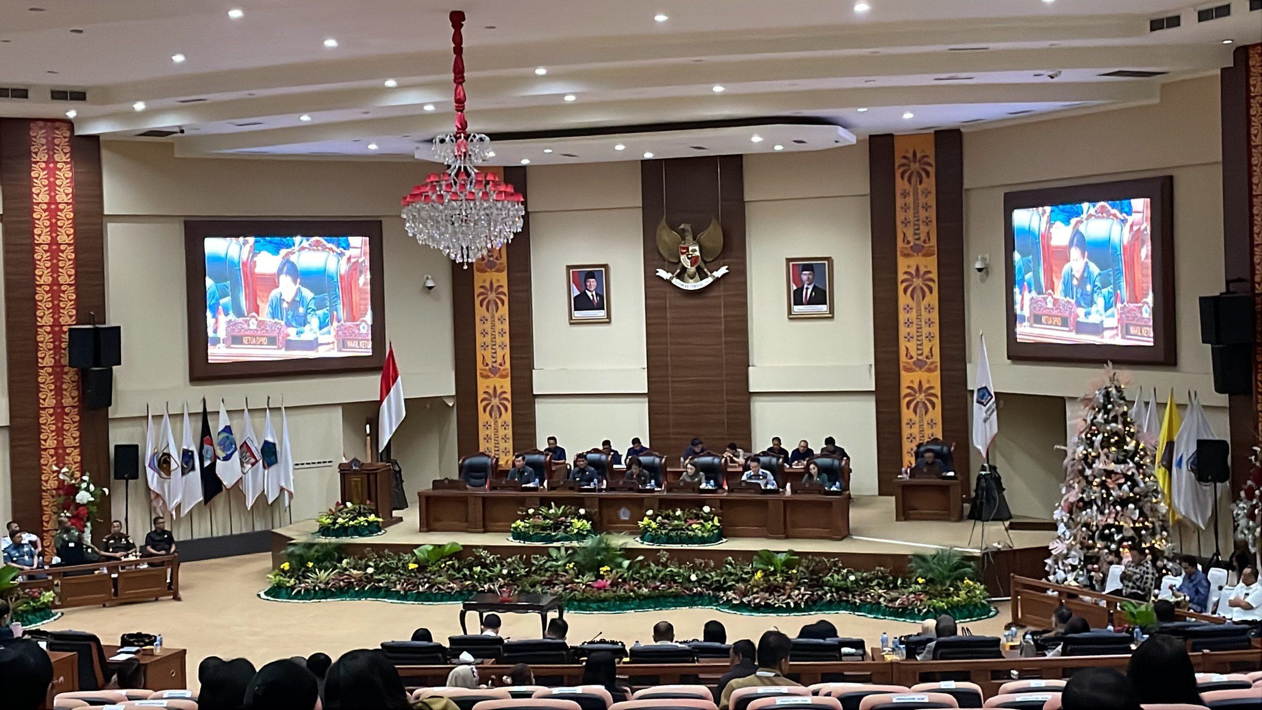 Dewan Perwakilan Rakyat Daerah (DPRD) Provinsi Sulawesi Utara menggelar rapat paripurna penandatanganan nota kesepakatan Kebijakan Umum Anggaran dan Prioritas Plafon Anggaran Sementara (KUA-PPAS) APBD Provinsi Sulut Tahun 2026 serta perubahan Program Pembentukan Peraturan Daerah (Propemperda). Rapat berlangsung di Ruang Paripurna DPRD Sulut, Selasa (18/11).