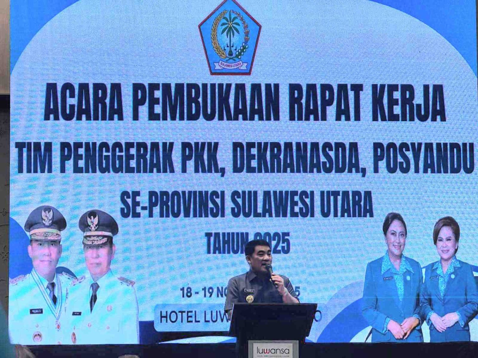 Gubernur Sulawesi Utara, Yulius Selvanus Komaling (YSK), membuka secara resmi Rapat Kerja Tim Penggerak PKK, Dekranasda, dan Posyandu se-Sulut yang digelar di Hotel Luwansa, Manado, Selasa (18/11/2025).