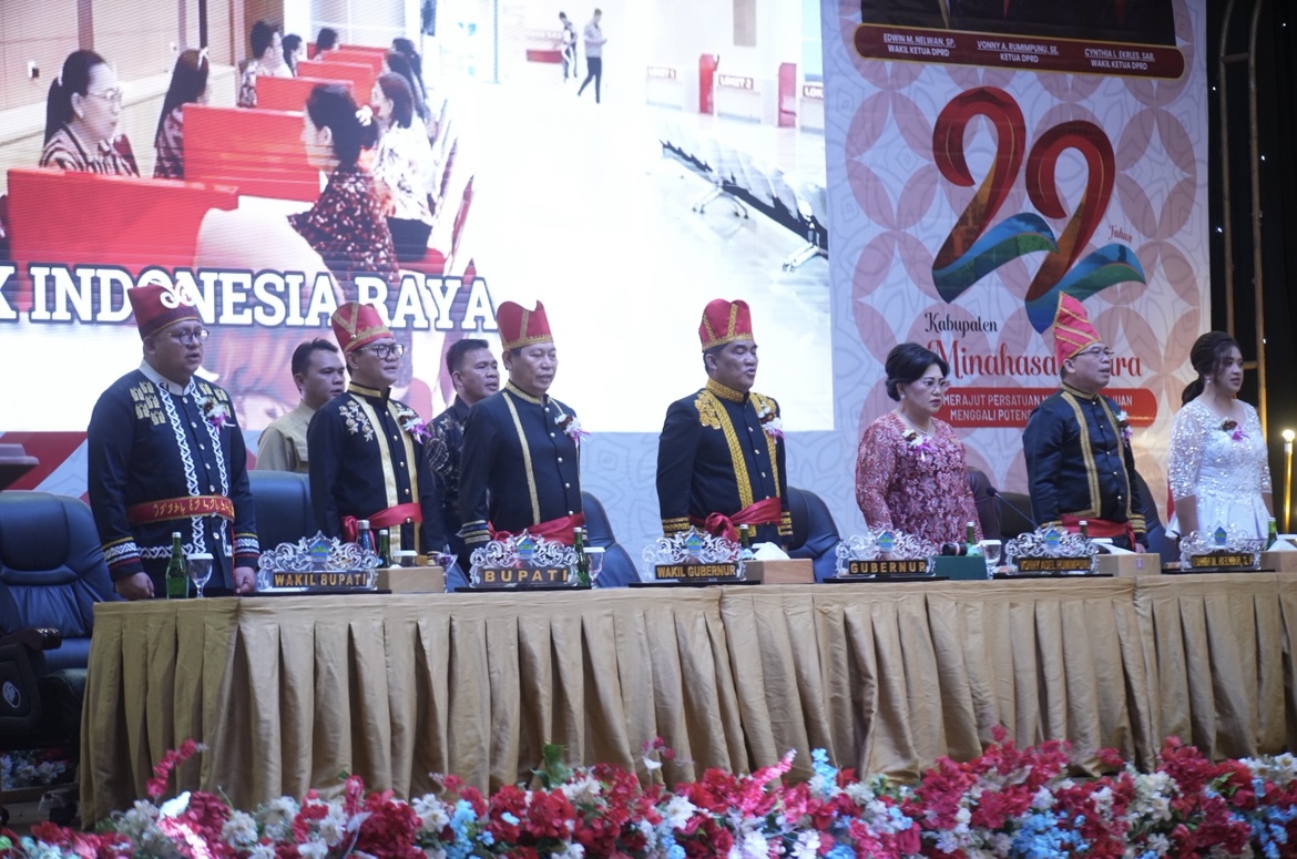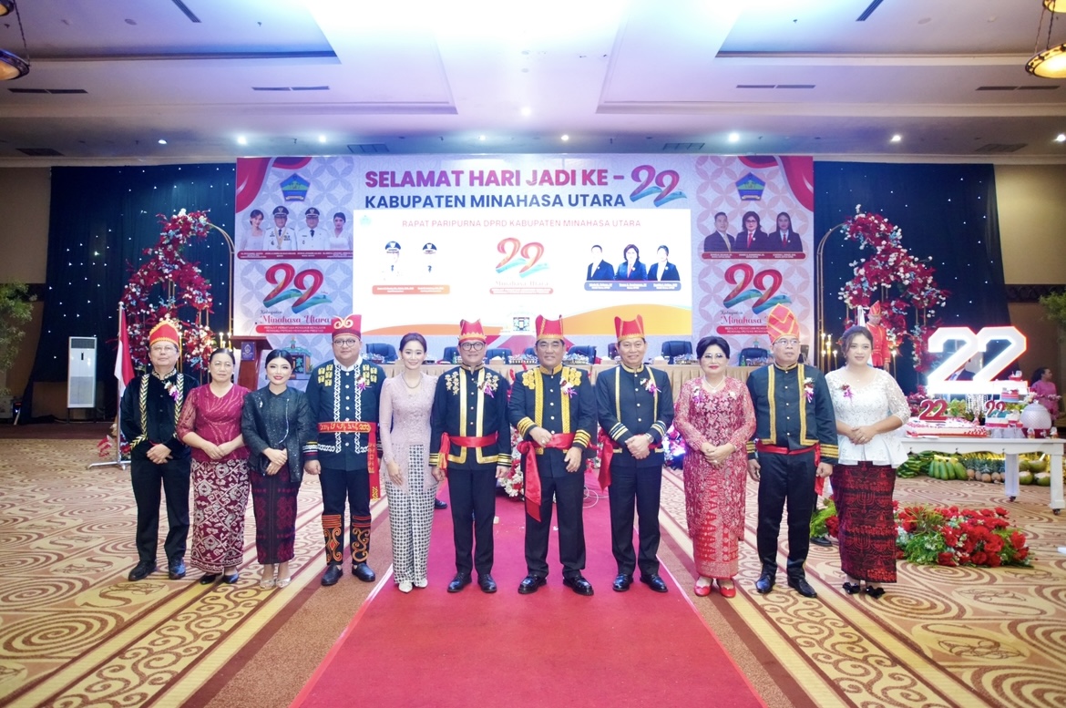 Dalam kesempatan tersebut, Bupati dan Ketua DPRD Minahasa Utara turut menyampaikan laporan dan refleksi perjalanan pembangunan selama 22 tahun, meliputi perkembangan ekonomi, pembangunan infrastruktur, hingga program sosial yang telah berjalan.