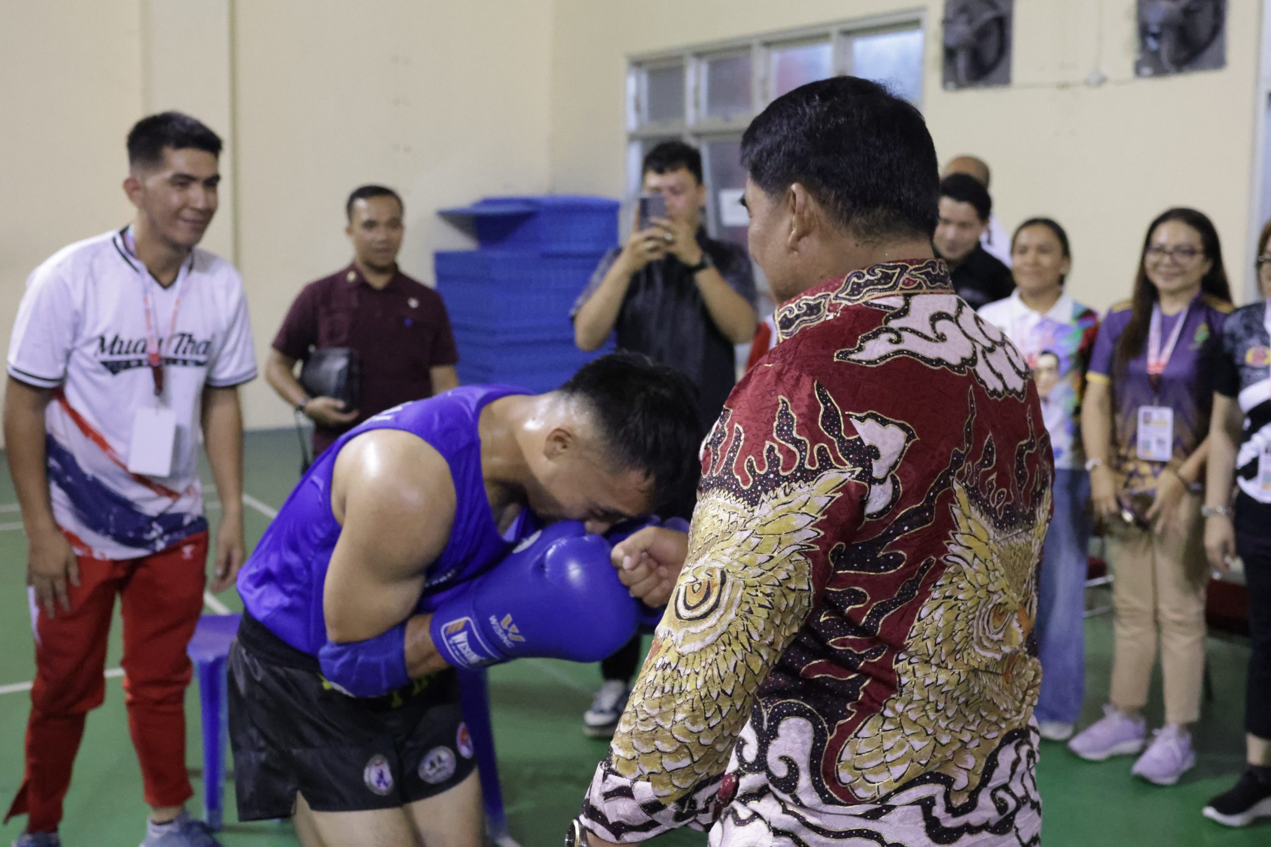 Kunjungan dilanjutkan ke arena anggar. Yulius meninjau kesiapan venue sekaligus mengamati jalannya pertandingan dari dekat. Ia memastikan fasilitas pertandingan berjalan sesuai standar dan aman digunakan atlet.