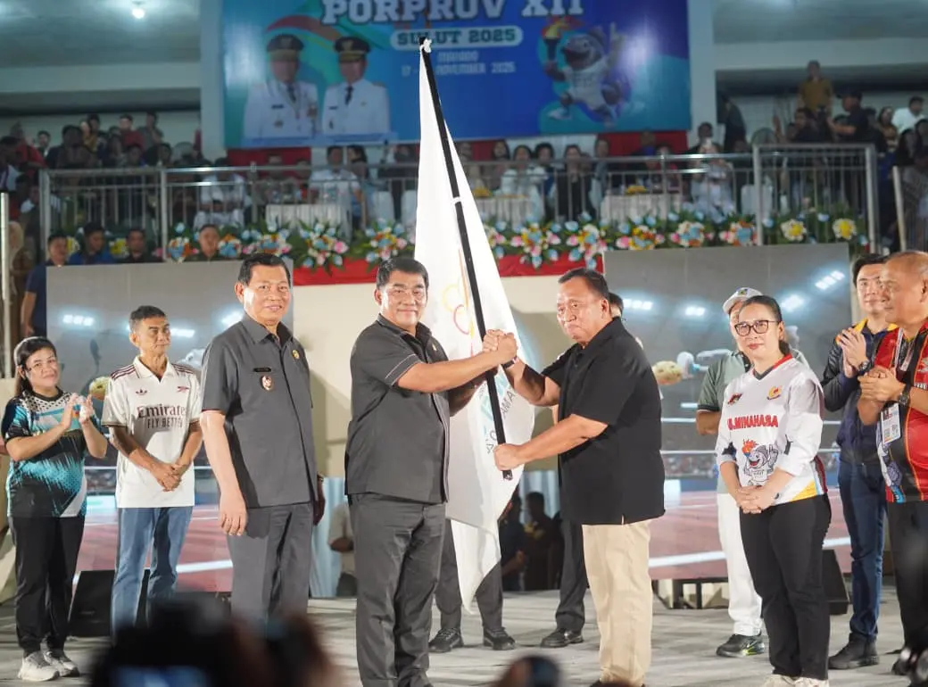 Momentum penutupan Porprov turut diwarnai pengumuman penting: Kabupaten Minahasa dan Kota Tomohon resmi dipercaya menjadi tuan rumah Porprov XIII tahun 2027.