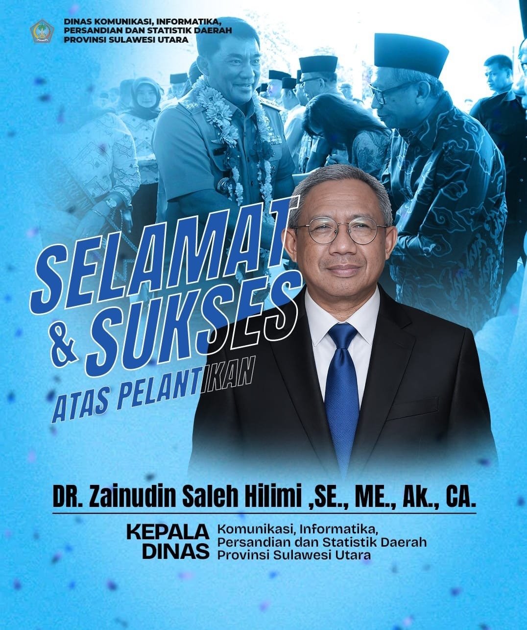 Manado – Dr. Zainudin Saleh Hilimi, SE., ME., Ak., CA resmi menjabat sebagai Kepala Dinas Komunikasi, Informatika, Persandian dan Statistik Daerah Provinsi Sulawesi Utara.
