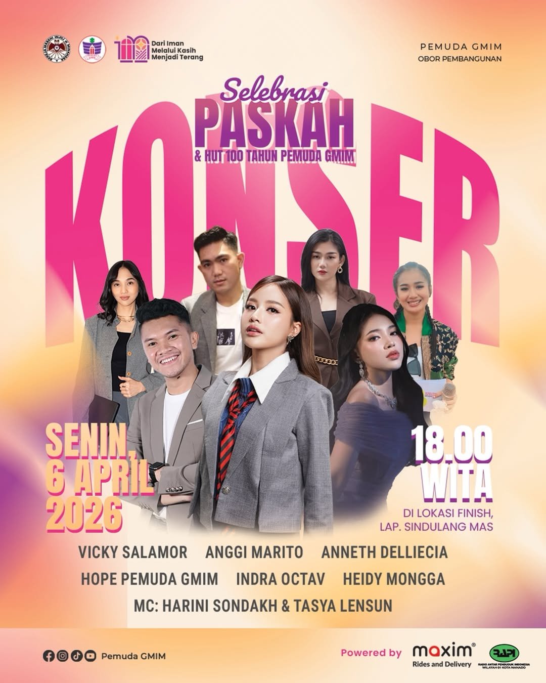 Mengusung tajuk Konser Selebrasi Paskah & HUT 100 Tahun Pemuda GMIM, acara ini menjadi penutup rangkaian kegiatan besar setelah Ibadah Agung dan Pawai Alegori yang lebih dulu digelar. Sukacita dan semangat kebersamaan akan berpadu dalam malam penuh pujian, musik, dan perayaan iman.
