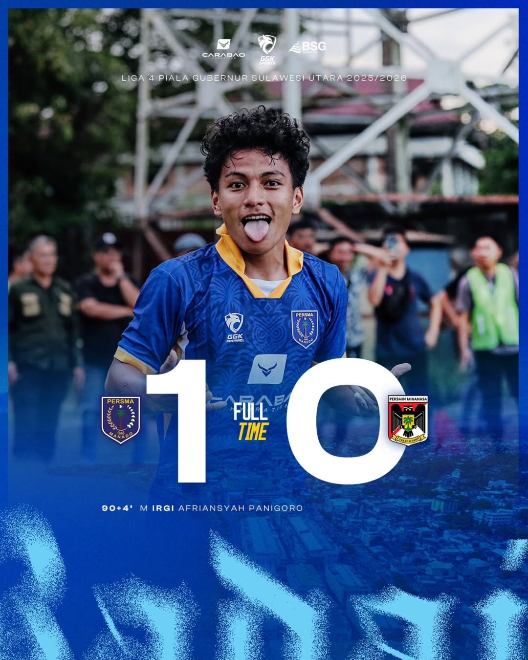 Drama akhirnya terjadi di masa injury time. Saat pertandingan tampak akan berakhir tanpa gol, Persma 1960 Manado justru berhasil mencuri kemenangan lewat gol krusial yang dicetak Mirgi Afriansyah Panigoro pada menit 90+4.
