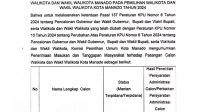 KPU Manado Buka Tanggapan Masyarat Untuk Pasangan Calon Di Pilwako Manado 2024